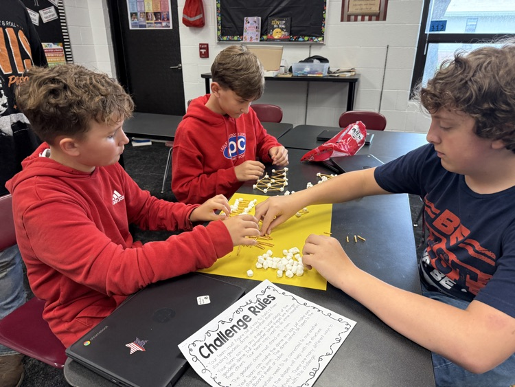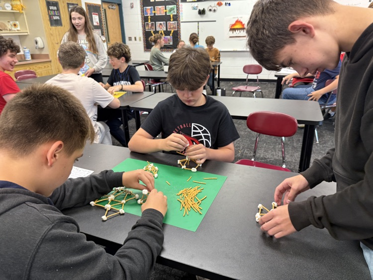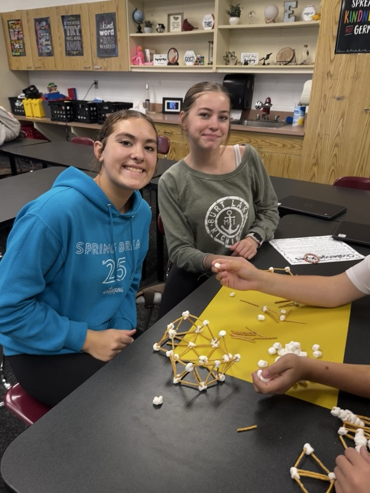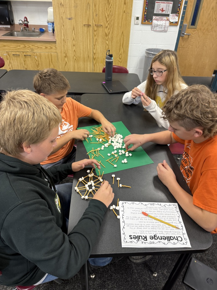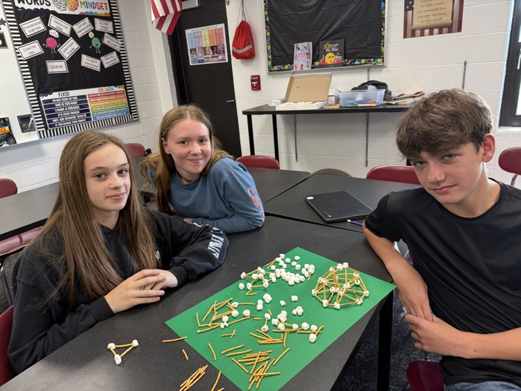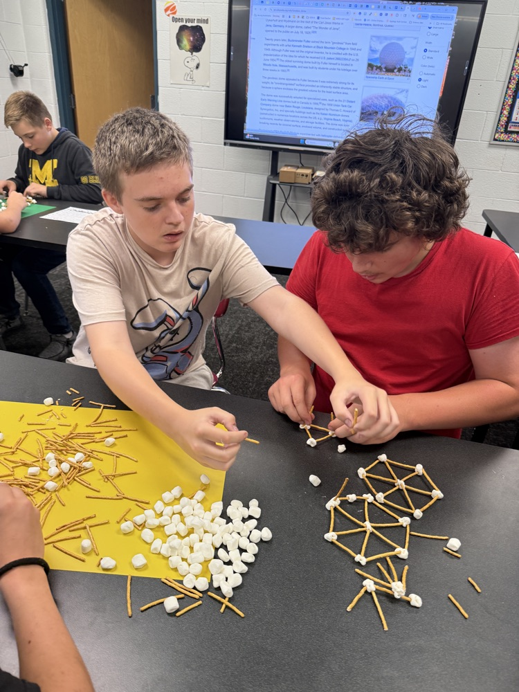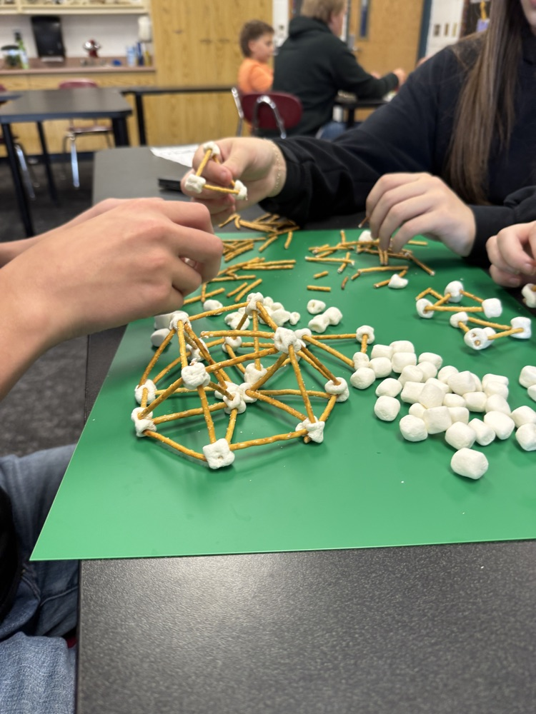 Students in Technology electives participated in a STEM challenge. After learning about geodesic domes, they worked in groups to construct their own out of pretzel sticks and marshmallows.