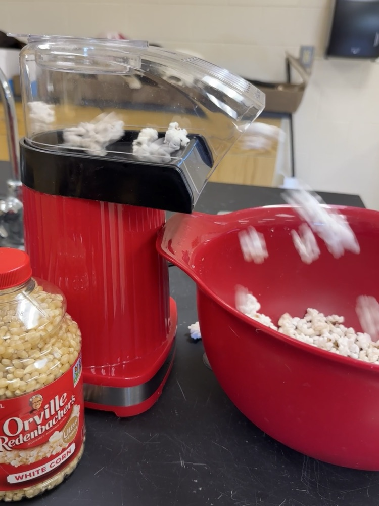 7th grade science students applied their knowledge of Convection, Conduction and Radiation by engaging in a "Popcorn Lab" where they popped popcorn using each of these methods of heat transfer. They also got to eat their product, which was a tasty bonus!